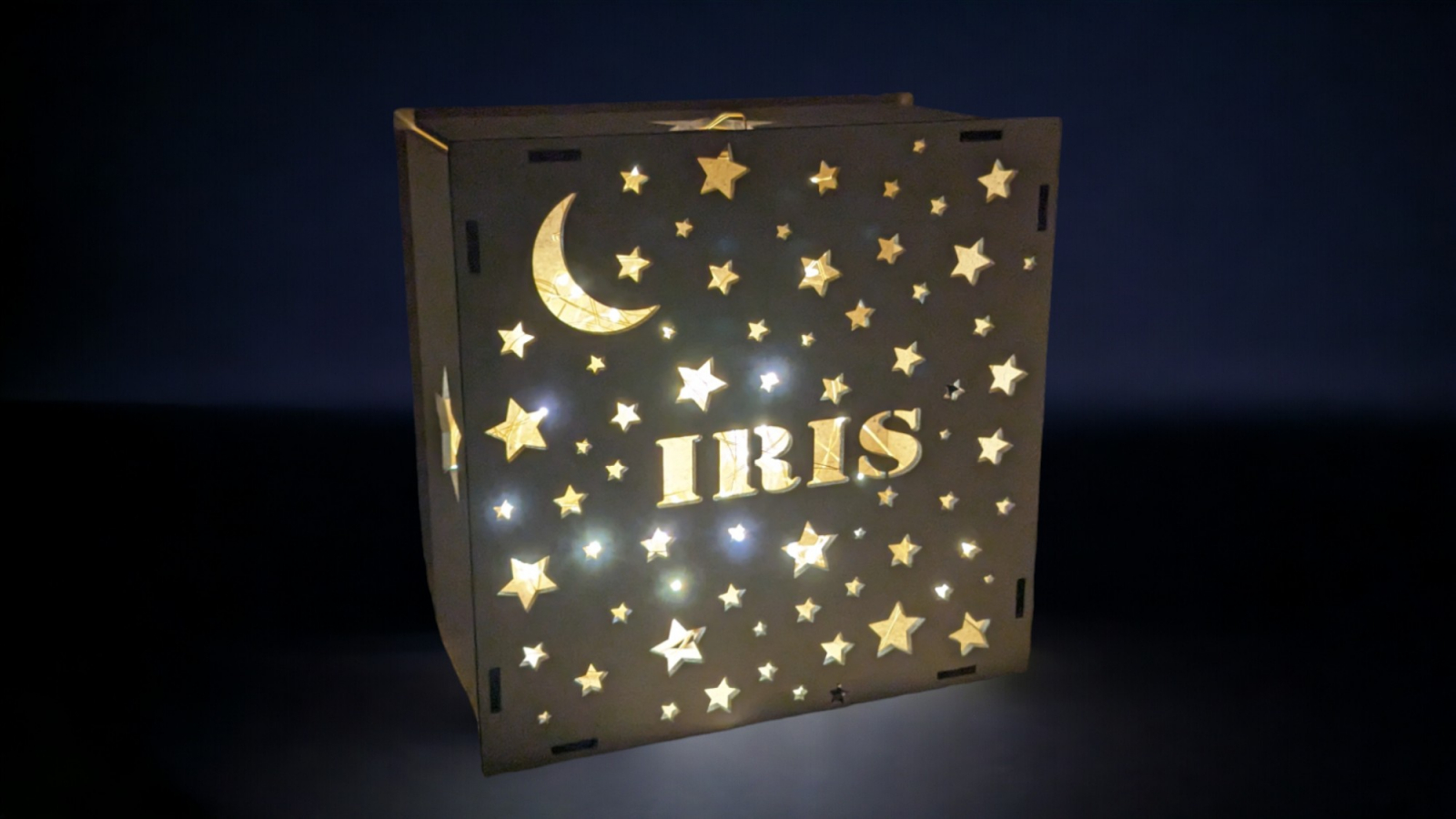 Intrigați-vă simțurile și creați o atmosferă caldă și personalizată în camera dumneavoastră sau a celor dragi cu această lampa de veghe în formă pătrată din MDF, personalizată cu un nume special. Această lampă nu este doar o sursă de lumină, ci și o piesă decorativă distinctivă, oferind o notă de intimitate și confort în spațiul dumneavoastră.