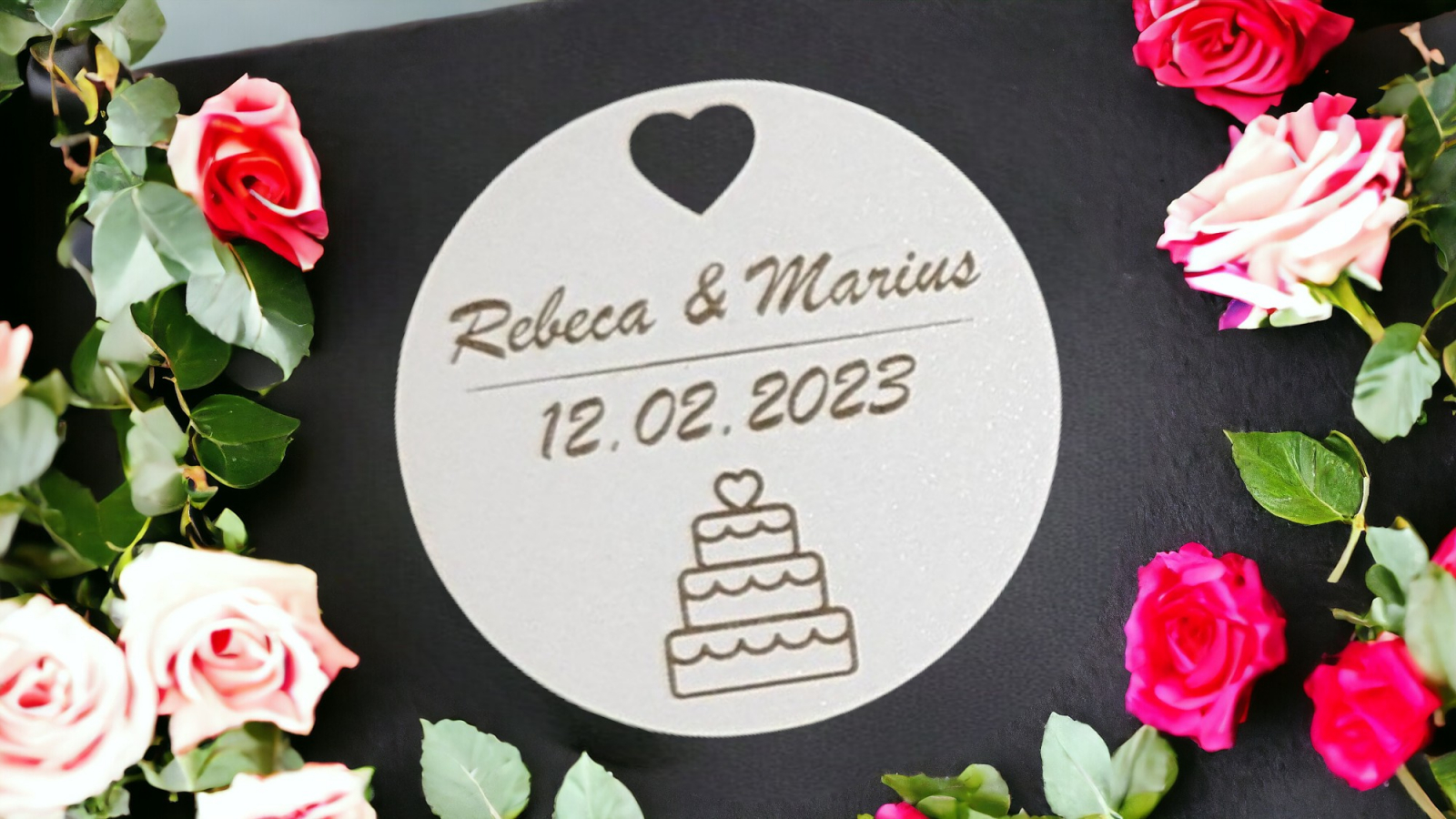 Material de Înaltă Calitate: Realizată din MDF de înaltă calitate, această marturie pentru nuntă combină frumusețea și durabilitatea într-un singur element.